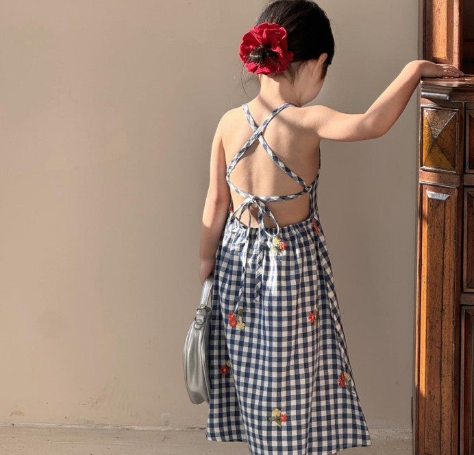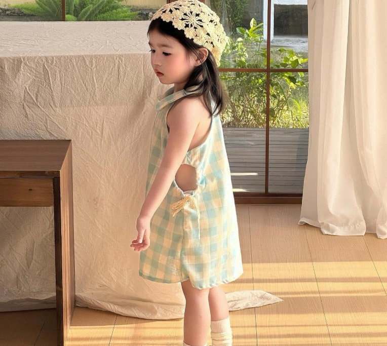 - [수입]블루체크펀칭원피스
