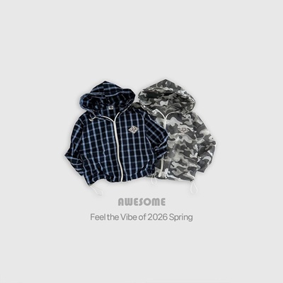 어썸베베.체크후드윈드점퍼